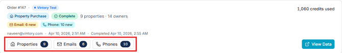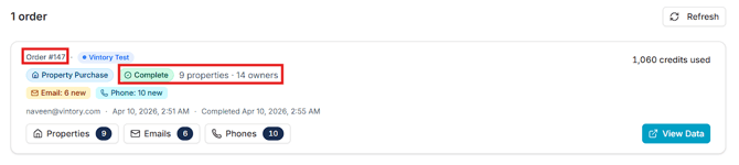 The Orders tab provides a centralized view of all your purchases. It allows you to track completed orders, review what was included, and understand the breakdown of purchased data.