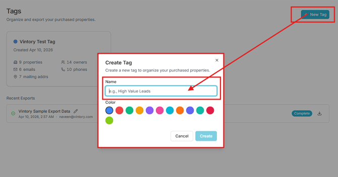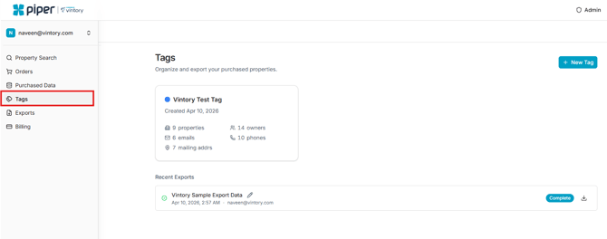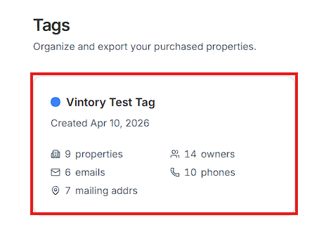 Tags help you keep your purchased property data organized, searchable, and ready for export. By assigning tags to your data, you can quickly locate specific groups of properties and streamline your workflows.